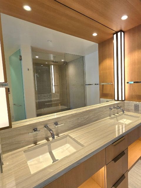 Amenities to include 5th floor amenity deck with lap pool (3 rows), plunge pool with hot tub. His and her spa. Fitness. BBQ. Large lawn. Yoga.
