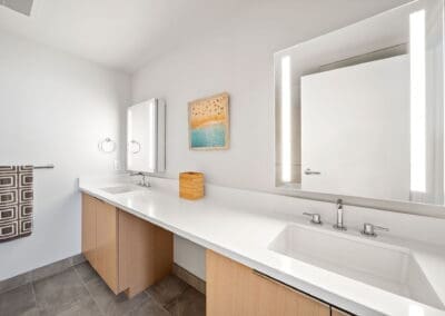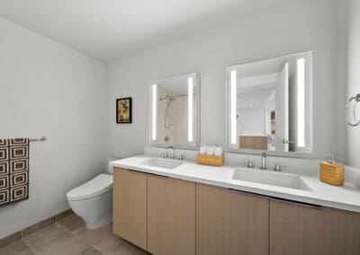 Light and bright engineered wood flooring, quality Studio Becker cabinetry, quartzite counter and vanity tops, stainless Bosch appliances, and Toto wash-lets and double sinks in both baths. Immaculately maintained in "Move In" condition.