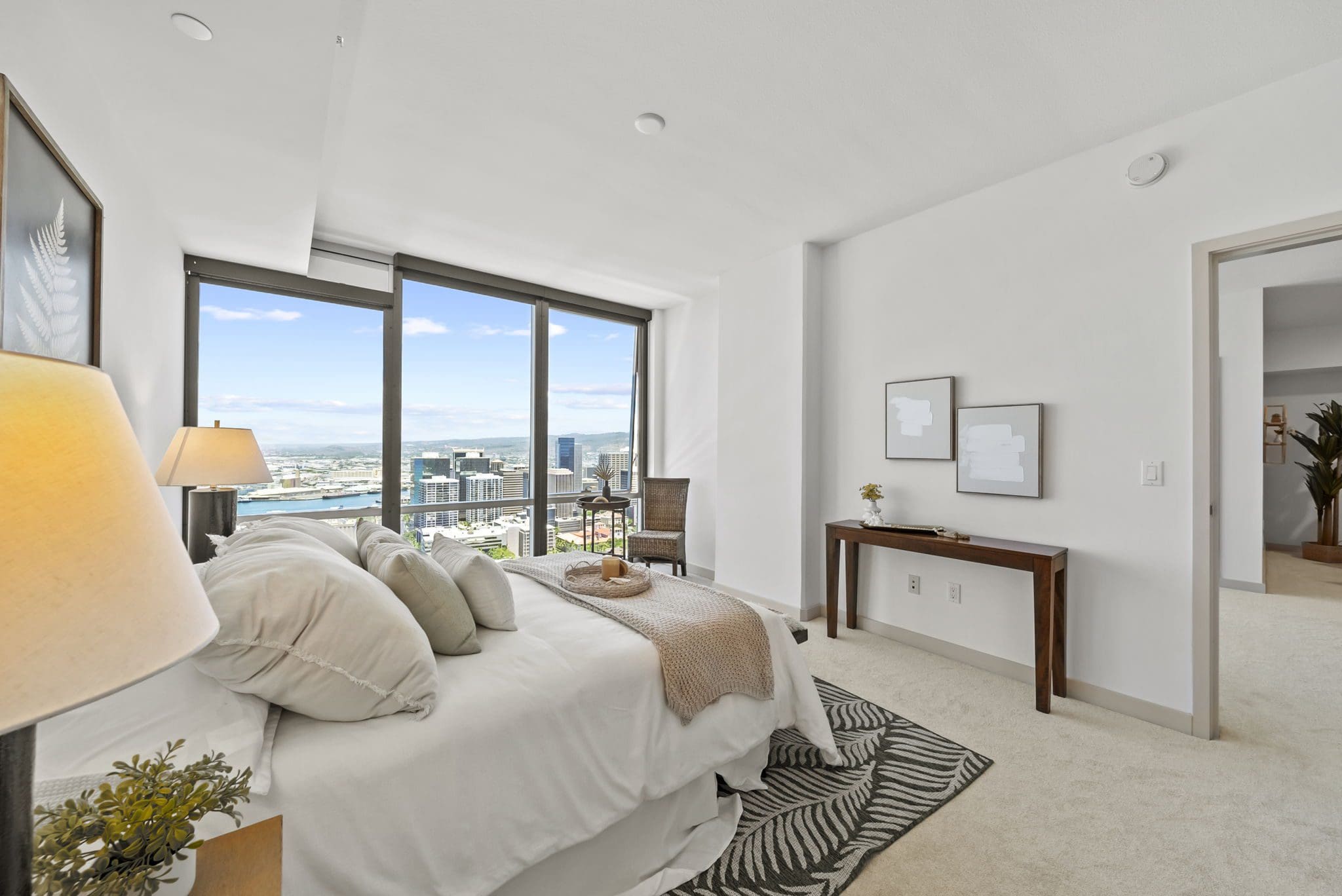 Absolutely Spectacular panoramic views from this Stunning PH-Level residence of Honolulu Harbor, the ocean, Downtown Honolulu and the Waianae mountain range beyond, not to mention beautiful sunsets and twilight colors. WOW!