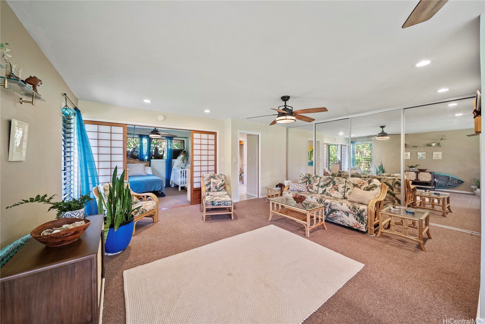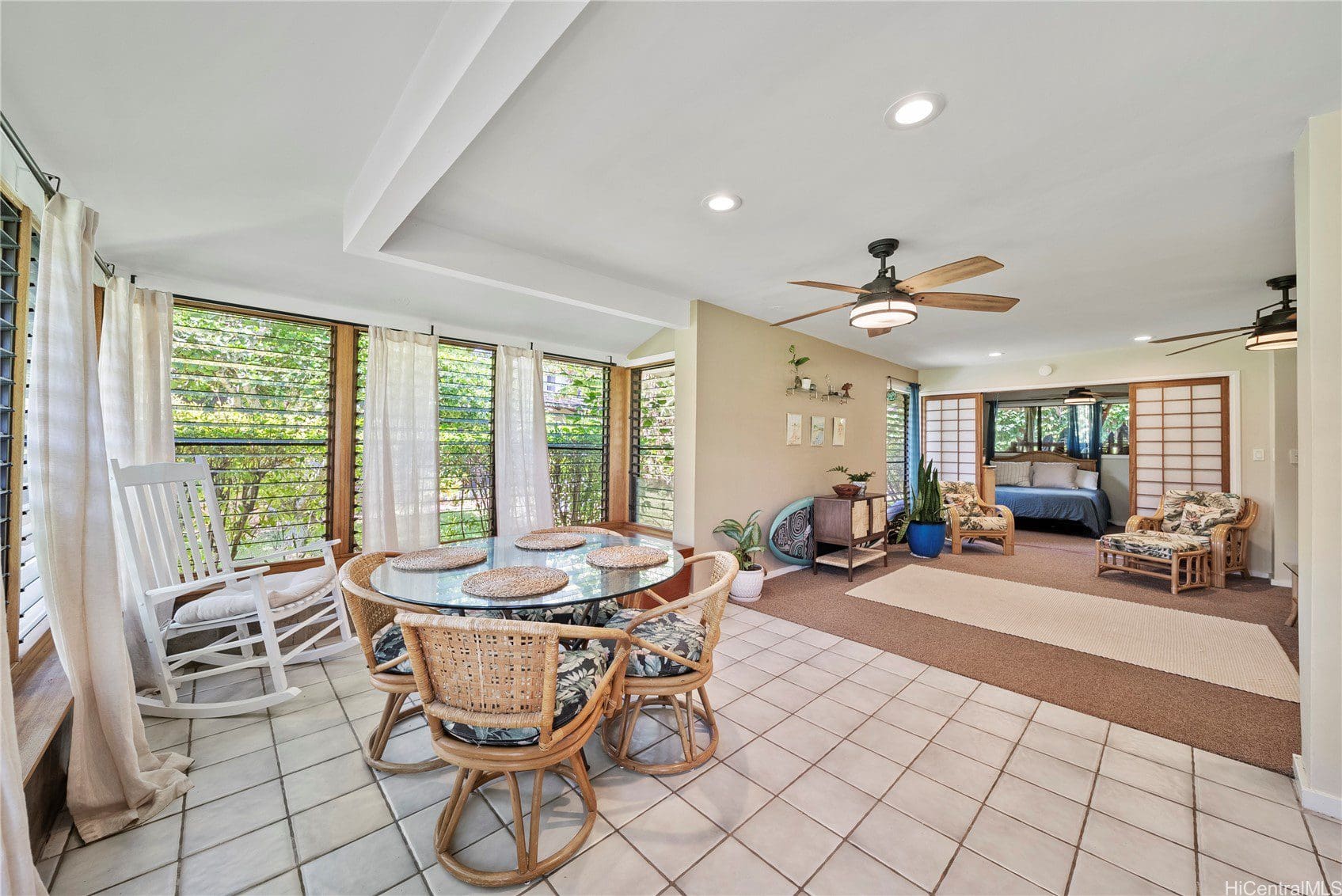 Spacious well laid-out single-level residence w/large "light & bright" dining area which flows nicely into the main living room w/an extra large closet for ample storage. Bedroom and bathroom are both accessible from the main living area w/a back door to the outside shower/"courtyard" and common grounds.